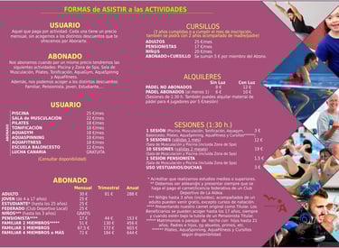 Aquí puedes ver el díptico con toda la información necesaria para acudir a las actividades impartidas por la Sociedad de Deportes de La Aldea.