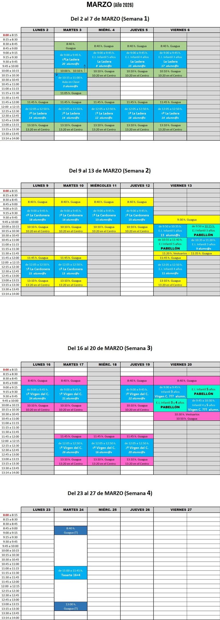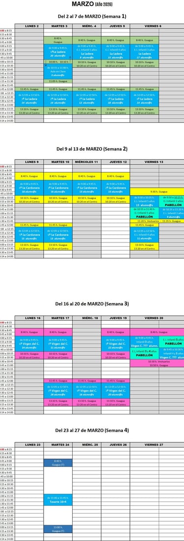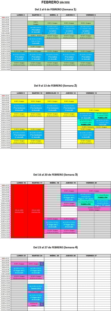 En el actual curso escolar, se cumplen 15 temporadas de dicho proyecto, donde desde hace 3 años, al haber 4 centros escolares municipales, cada uno de ellos tiene una semana del mes para acudir a la piscina cubierta, y en el caso de infantil, además disfrutarán del pabellón cubierto.